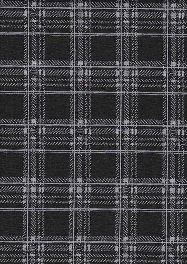 1 Yard Black Double Knit Jacquard Plaid Fabric Stretch Polyester Spandex 58/60" Wide