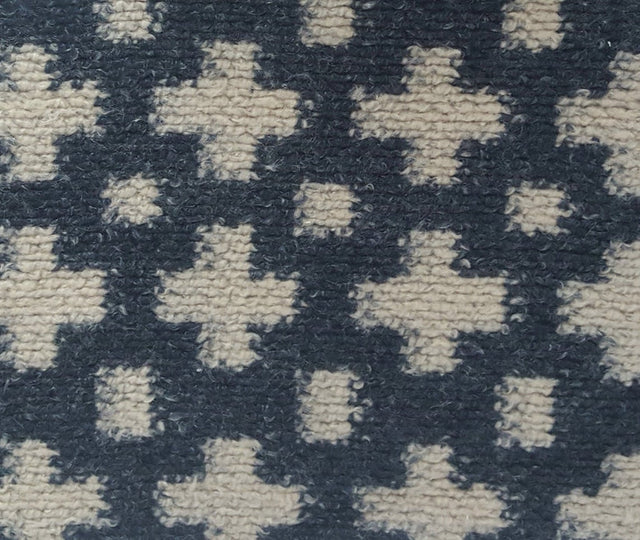 - Intricate cross pattern in navy and beige adds visual interest and texture.
