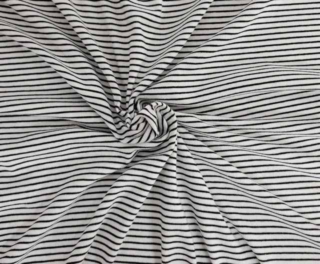- Yarn dyed black and white stripe pattern on baby hacci sweater knit fabric