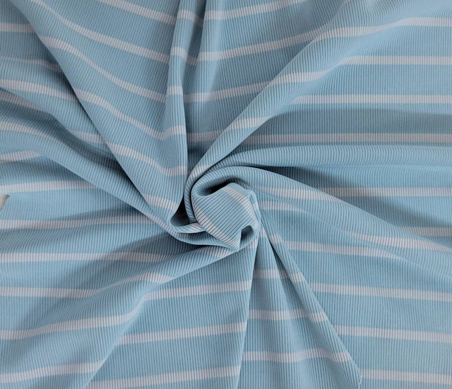 1 Yard Blue Stripe 1x1 Rib Knit Fabric Nylon Spandex Stretch Ribbing for Cuffs, Collars & Activewear