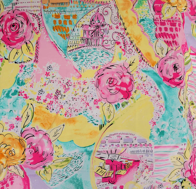 Vibrant and versatile, this multicolor big flower print fabric features a rich satin finish on durable cotton twill with 1 way stretch. Made from a blend of 97% cotton and 3% spandex, it’s perfect for structured yet comfortable garments such as chinos, jackets, pencil skirts, and uniforms. The bold floral design adds a fashionable flair to workwear, casual wear, and even accessories like bags or aprons. Medium heavy weight at 220 GSM, this fabric offers just the right amount of give and a smooth surface for tailored projects.