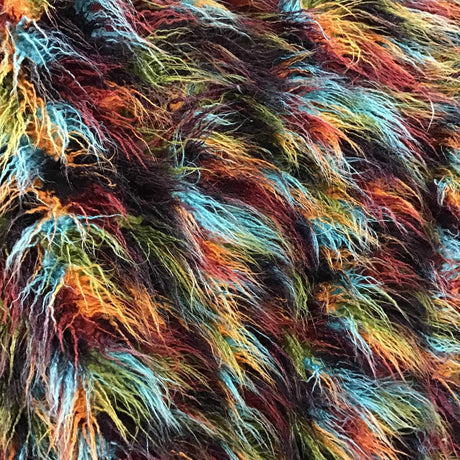 1 Yard Vibrant Multicolor Curly Long Pile Faux Fur Fabric 60" Width