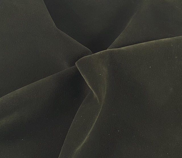 This olive buffalo skin vegan suede fabric offers a cruelty free, stylish alternative to genuine leather with a rich textured surface. Made from 100% polyester and weighing 320 GSM, it provides durability and a natural grain look suitable for both fashion and home decor projects. Ideal for sewing jackets, handbags, skirts, or upholstery, its tough exterior ensures long lasting wear. The continuous yardage shipping option makes it perfect for bulk orders and larger creative projects.