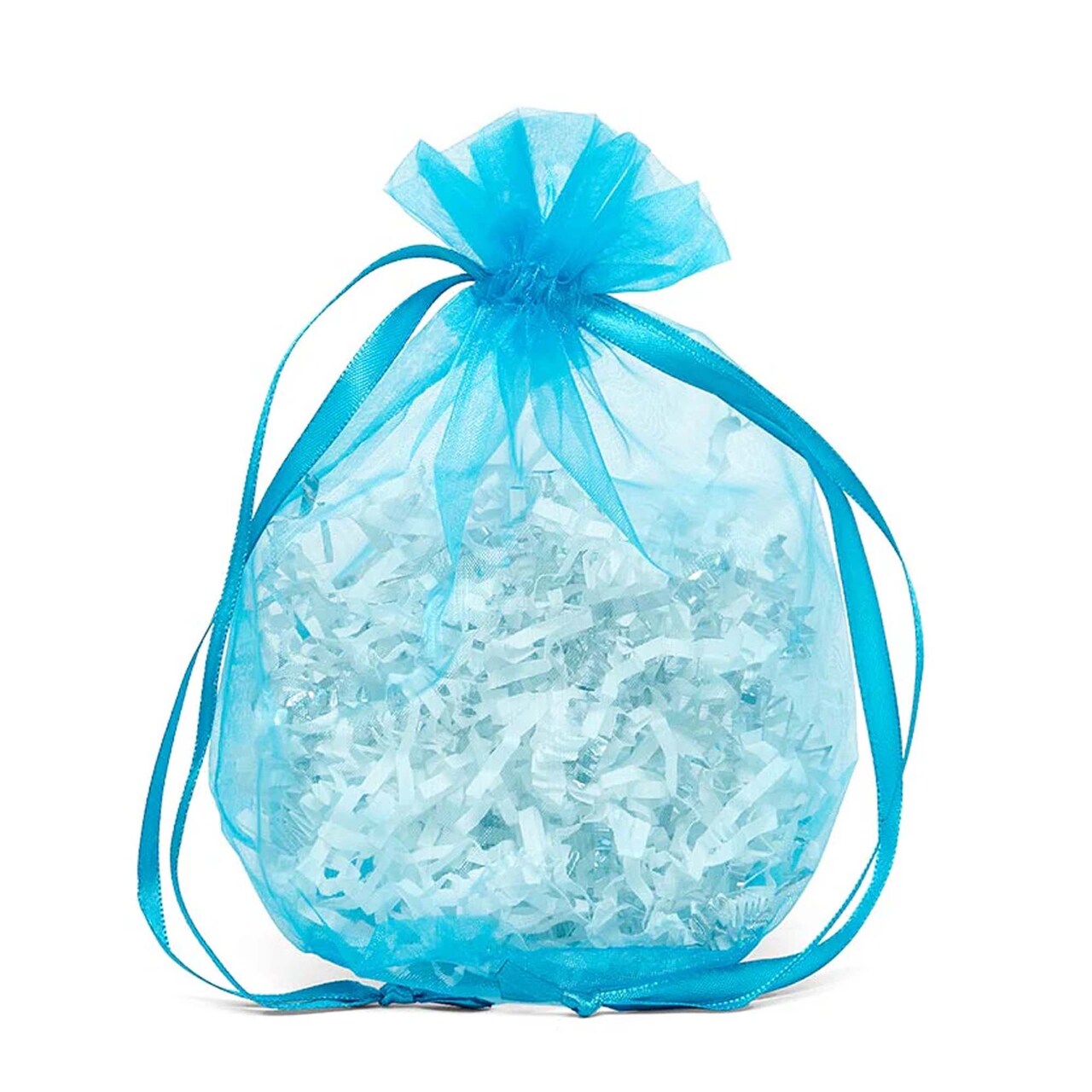 Wide Round Flat Bottom Organza Bags 6 1/2'' x 4'' x 7'' for Special Occasions - Turquoise / 30 count is backordered and will ship as soon as it is back in stock.
