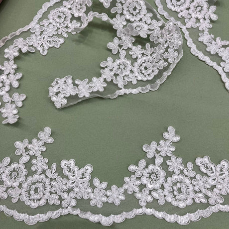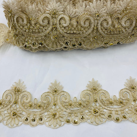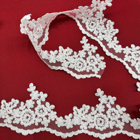1 Yard Beaded Corded Lace Trimming Embroidered on Polyester Net Mesh