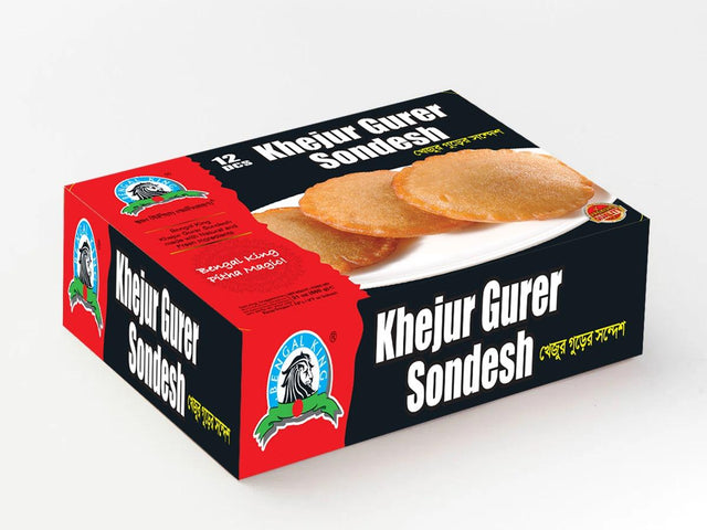 BK Khejur Gurer Sondesh is a traditional Bengali sweet made from fresh paneer (chhena) and flavored with date palm jaggery (khejur gur). This delicate sweet is known for its rich, earthy sweetness and smooth, melt-in-your-mouth texture. Perfectly balanced with the natural sweetness of date palm jaggery, Khejur Gurer Sondesh is a delightful treat, often enjoyed during festivals and special occasions.