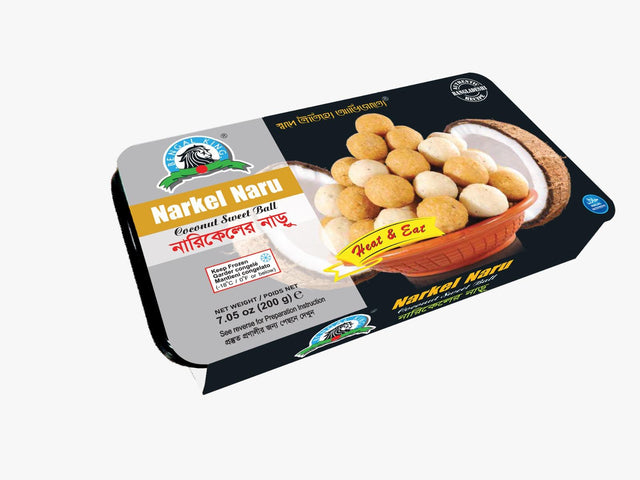 BK Narkel Naru is a traditional Bengali sweet made with grated coconut, sugar, and a touch of ghee, shaped into small round balls. These delightful treats are rich in flavor, with a perfect balance of sweetness and coconut aroma. Often enjoyed as a festive snack or dessert, Narkel Naru offers a crunchy exterior and a soft, chewy interior, making it a beloved treat during festivals like Pohela Boishakh and other special occasions.