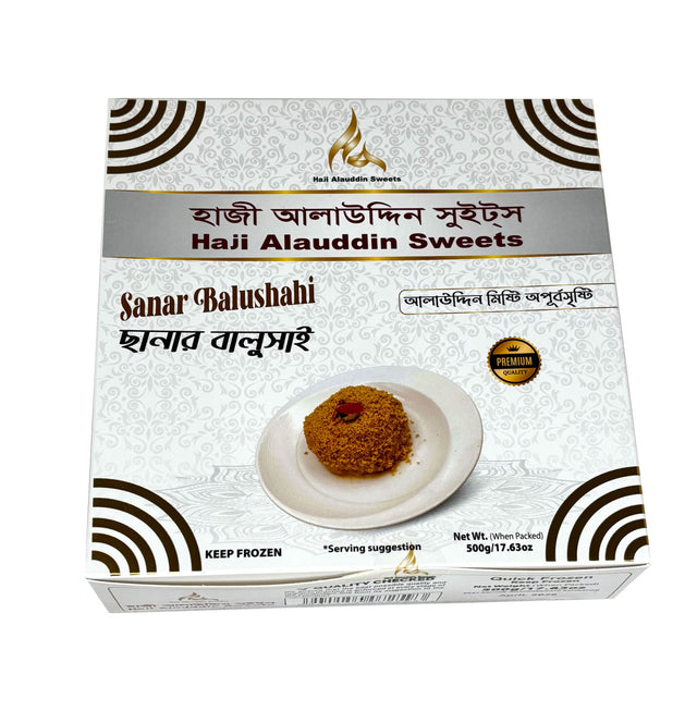 Haji Alauddin’s Sanar Balushahi is a rich and indulgent Bengali sweet, made from premium chhena (paneer) and deep-fried to perfection before being soaked in a flavorful sugar syrup. This traditional dessert offers a crispy outer layer with a soft, melt-in-the-mouth center, making it a favorite for festive occasions and sweet cravings.