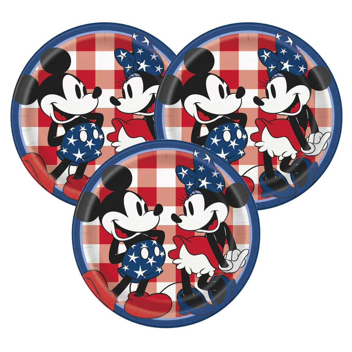 Disney Mickey & Minnie Mouse Patriotic Round 9" Dinner Plates 8ct