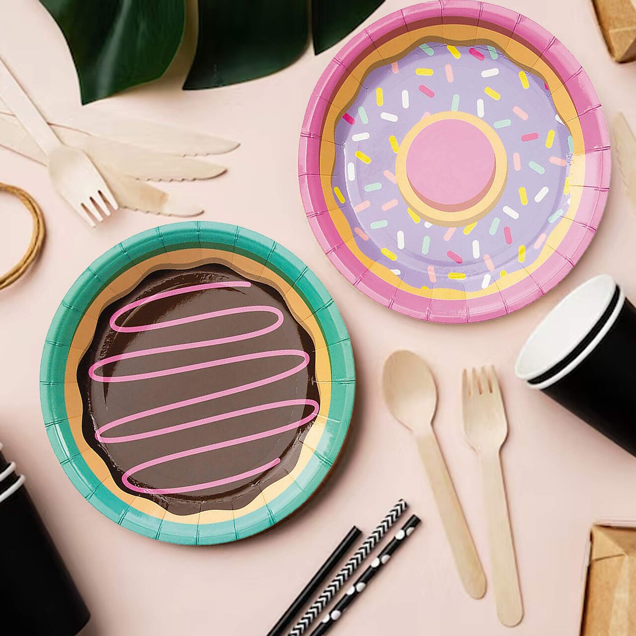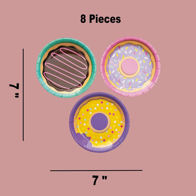 8 Ct. Donut Party Paper Dessert Plates 7" Colorful Assorted Designs