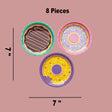 - Design: Fun and colorful donut patterns (assortment may vary)