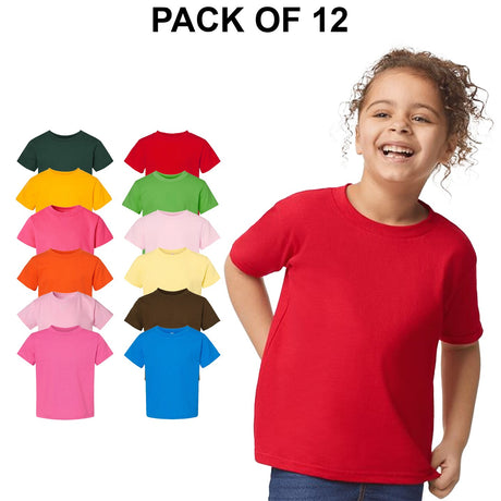 12 Pack Gildan® Heavy Cotton Youth Crew Neck Short Sleeve T-Shirt