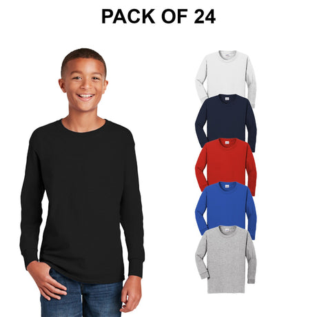 24 Pack Gildan® Youth Heavy Cotton Long Sleeve Crew-Neck T-Shirt