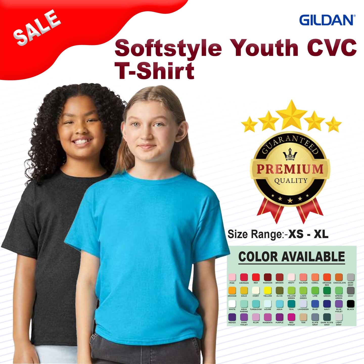 "Gildan Softstyle Youth CVC Crewneck Short Sleeve T-Shirt The Youth Softstyle CVC T-Shirt combines comfort, durability, and print-friendly fabric in a stylish fit. Made from a 60/40 ring-spun cotton/polyester blend, this lightweight 4.6 oz shirt