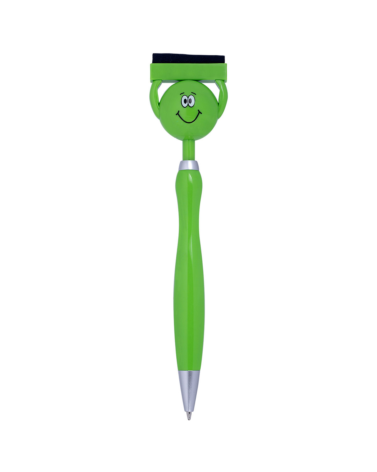 This multi-function pen is not only a writing tool but also features a screen cleaner at the top with a fun goofy character face. Made from durable ABS plastic, the pen includes a microfiber squeegee for easy cleaning of your touchscreen devices. It comes with black, medium-point ink and provides a practical yet playful design for everyday use.