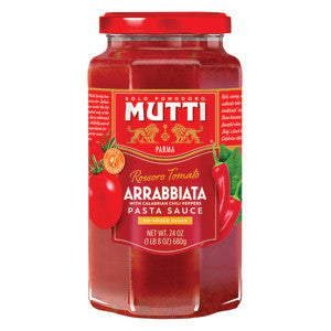 Mutti Arrabbiata Pasta Sauce is made from a recipe with Italian roots, combining sun-ripened tomatoes with Calabrian Chili Peppers. Made simply and free of added sugar, Mutti Arrabbiata Pasta Sauce delivers an authentic Italian taste the easy way. Comes in an authentic Italian jar to alert customers of Mutti's reputation as the top tomato sauce brand in Italy.