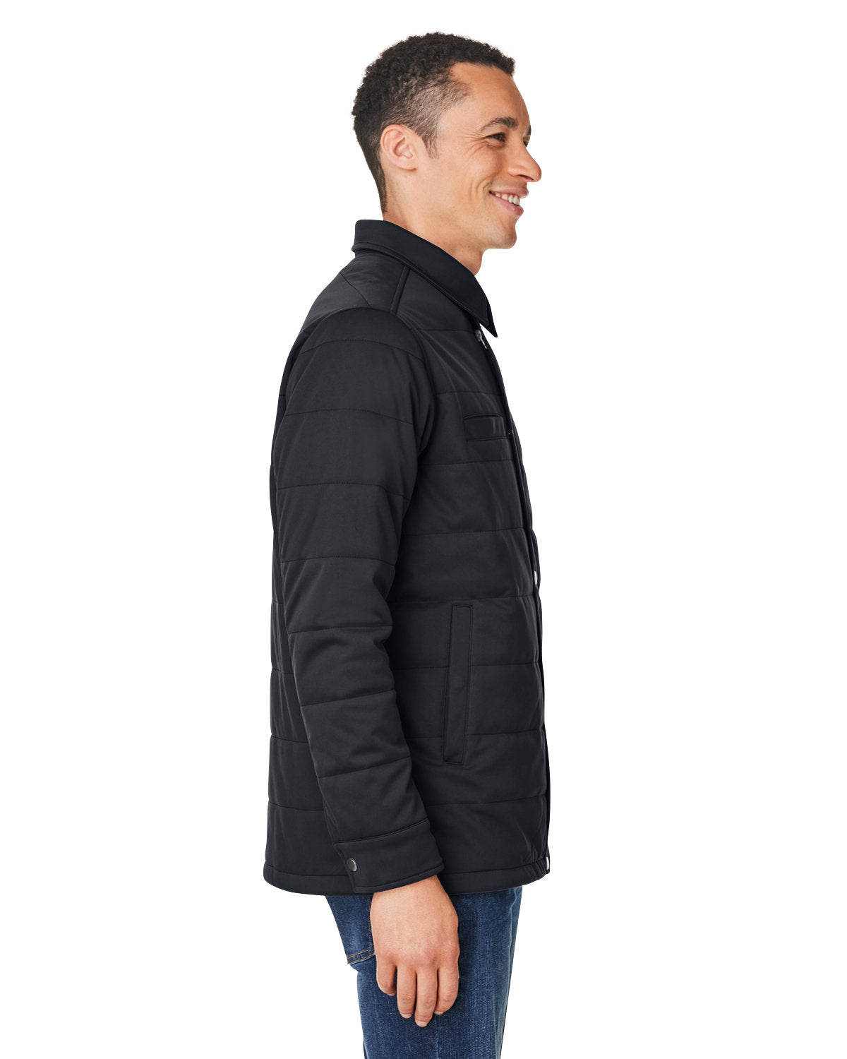 Description: This jacket features an 8 oz/yd² / 270 gsm, 3-layer construction with 100% polyester interlock bonded to a polyester birdseye fabric and an inner membrane. It has 80 gsm thermal poly fill for warmth, with an 8,000 mm waterproof rating and 1,000 g breathability rating. The jacket is water-resistant and equipped with a center front storm flap, metal snaps, and hidden coil zipper for added protection.