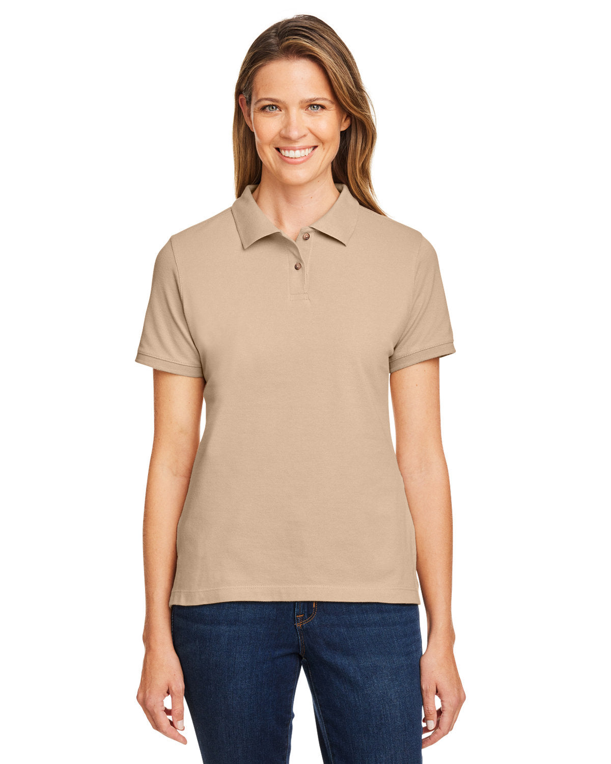 Description: This feminine polo is made from 100% ringspun cotton piqué, offering a soft and comfortable fit. Designed with a flattering silhouette, it is perfect for both casual outings and more polished occasions.