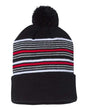 12" Striped Pom-Pom Cuffed Beanie - Black/ White/ Grey/ Red / One Size is backordered and will ship as soon as it is back in stock.