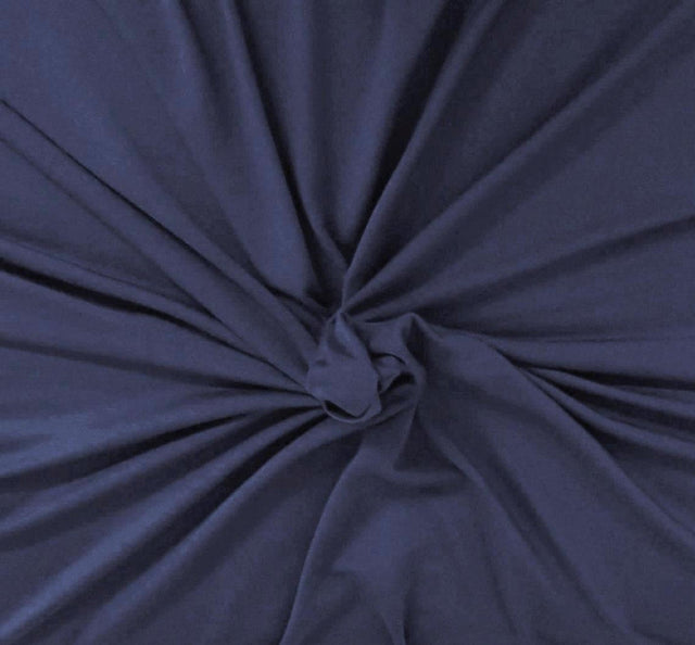 This Denim Blue Modal Rayon Spandex Jersey fabric features ultra soft comfort with fluid drape and flexible stretch. The rich denim inspired tone adds a stylish, everyday look perfect for sewing casualwear, dresses, and tees. Crafted from a breathable blend of modal and rayon, this fabric stays cool and soft against the skin. It’s ideal for fitted garments that move with you and maintain their shape.