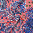1 Yard Luxe Coral Pink and Blue Baroque Fabric Smooth with Ornate Design for Statement Apparel, 61 Inches Wide