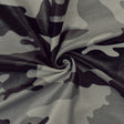 Premium nylon spandex tricot knit fabric with a bold camouflage print for swimwear and activewear