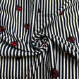 Create vibrant and comfortable apparel with this Navy Blue Stripe Ladybug Print Double Brushed Jersey Knit Fabric. Featuring charming red and black ladybugs printed on navy blue and white stripes, this fabric adds a playful yet classic look to any project.