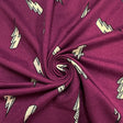 Energize your sewing projects with this Magenta Purple Lightning Bolt Print Double Brushed Jersey Knit Fabric. Featuring bold black and white lightning bolt motifs on a vibrant magenta background, this fabric adds a dynamic flair while maintaining comfort and softness.