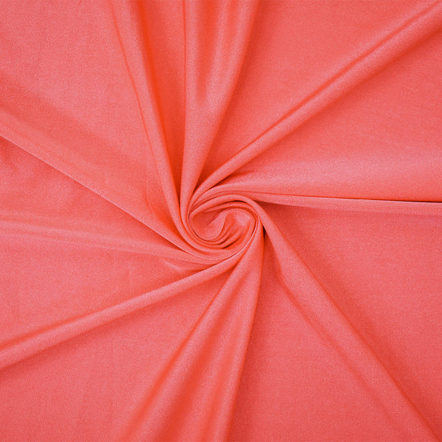 This Coral Pink Solid Nylon Stretch Spandex Swimwear Knit Fabric offers excellent performance and vibrant color for your swimwear and activewear projects. Made from 93% nylon and 7% spandex, it delivers a soft, cool hand feel combined with a lustrous finish. Its four-way stretch ensures maximum flexibility and comfort, while the lightweight fabric drapes beautifully for a flattering fit. Perfect for activewear, dancewear, swimwear, costumes, and more. Machine washable for easy