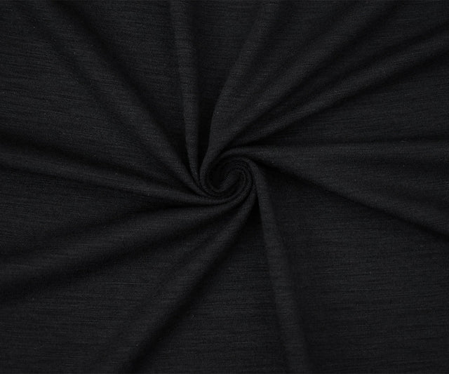 1 Yard Black Wool Blend Stretch Jersey Knit Fabric with Slub Texture 50 Inches Wide