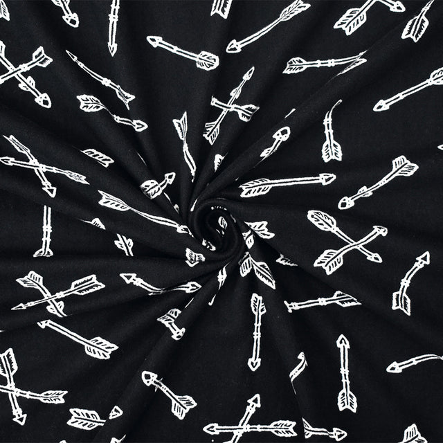 1 Yard Ultra-Soft Black and White Arrow Printed Double Brushed Jersey with a Modern Look for Cozy, Stylish Apparel, 58 Inches Wide