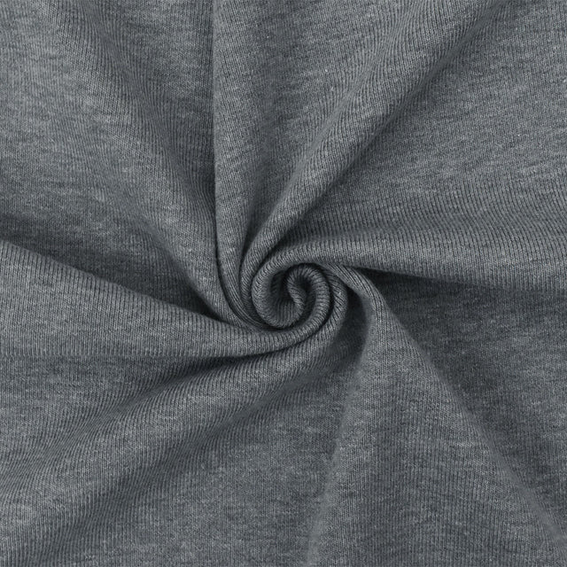 1 Yard Heather Medium Gray Rib Knit Fabric with Organic Cotton Poly Spandex Stretch 50 Inches Width