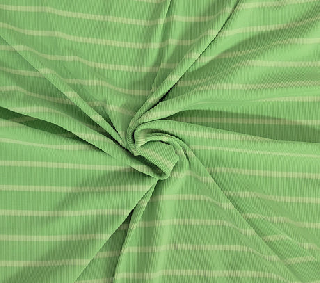 1 Yard Green Stripe 1x1 Rib Knit Nylon Spandex Stretch Fabric for Cuffs Collars