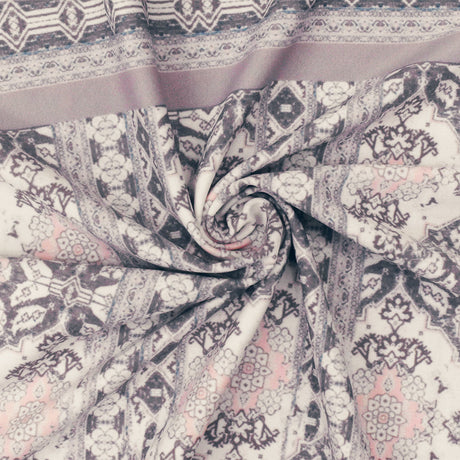 1 Yard Ivory Mauve Multicolor Moroccan Pattern Tricot Spandex Knit Fabric for Swimwear 58" Width