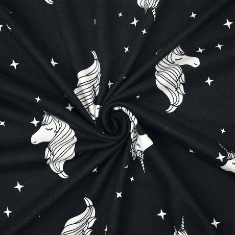 1 Yard Monochrome Unicorn Print Brushed Spandex Knit Fabric Soft Stretch Jersey 58 Inches Wide