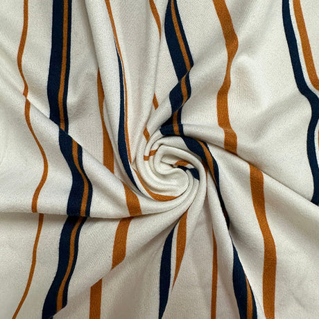 1 Yard Navy Blue Striped Double Brushed Jersey Knit Fabric with Ladybug Motif 58 Inches Width