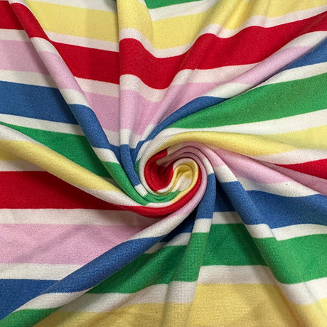 1 Yard Multicolor Rainbow Stripe Double Brushed Jersey Knit Fabric 58 Inches Wide with Stretch