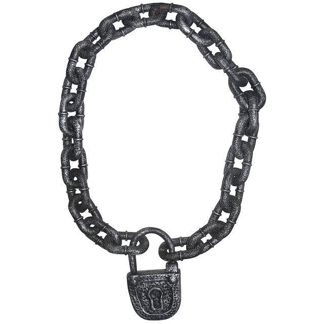 Add a haunting atmosphere to your Halloween events with our Chain With Lock. This lifelike plastic chain is perfect for jail scenes, haunted houses, and various party decorations. It measures 37 inches long, making it versatile for different settings.