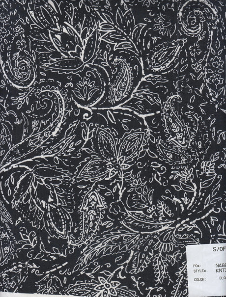 1 Yard Black Paisley Brushed DTY Knit Fabric Soft Stretch Fabric 58/60" Wide