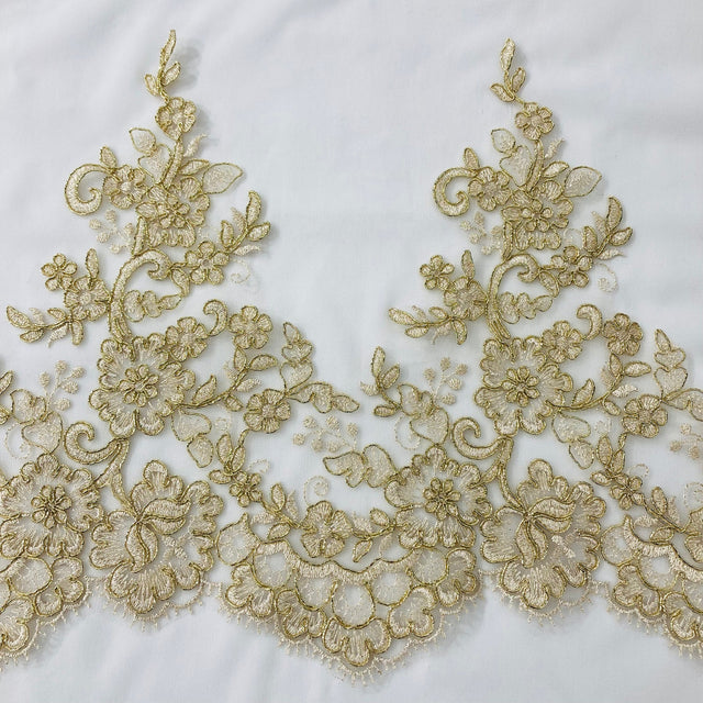1 Yard Corded Embroidered Floral Lace Trim 11" Wide 100% Polyester Net Mesh for Bridal & Special Occasion - Gold is backordered and will ship as soon as it is back in stock.