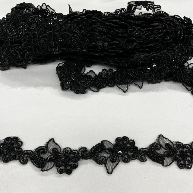 1 Yard Luxury Beaded and Corded Lace Trimming Embroidered on Fine Polyester Organza for Dresses 2 Inch Width - Black HB is backordered and will ship as soon as it is back in stock.