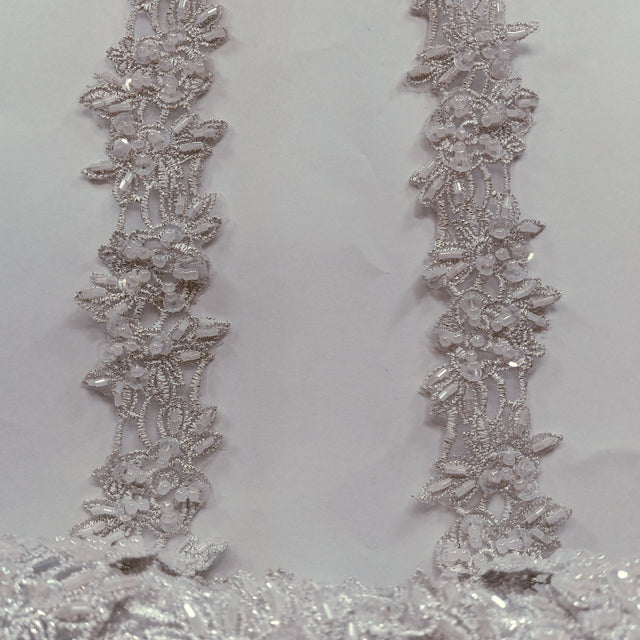 1 Yard Exquisite Beaded Lace Trimming Embroidered Polyester Organza for Bridal Dresses 1.5 Inch Width - Silver is backordered and will ship as soon as it is back in stock.