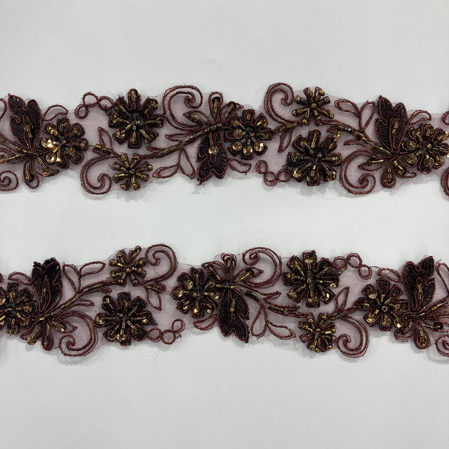 1 Yard Elegant Beaded & Corded Lace Trimming Embroidered on 100% Polyester Organza for Special Occasion Dresses 2 Inch Width - Brown Metallic is backordered and will ship as soon as it is back in stock.