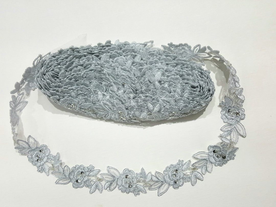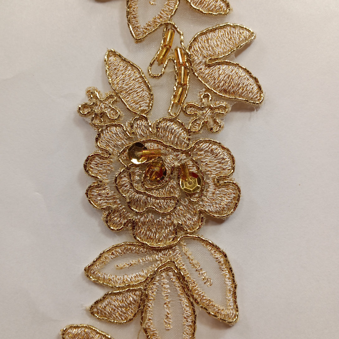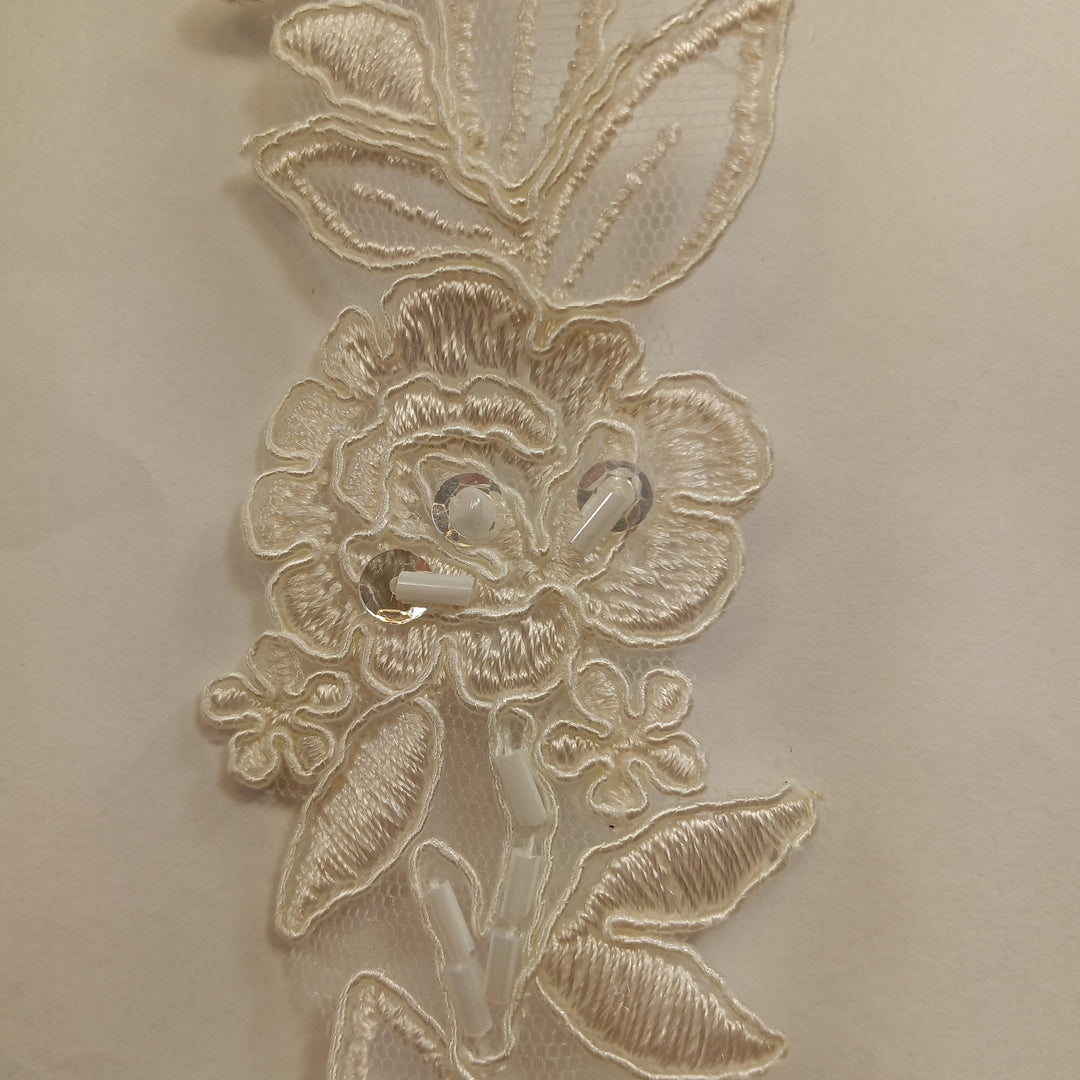 1 Yard Elegant Beaded & Corded Lace Trimming Embroidered on 100% Polyester Organza or Net Mesh for Bridal and Evening Wear 1.5 Inch Width