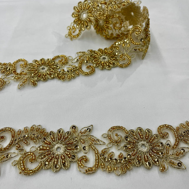 1 Yard Luxury Beaded Corded Lace Trimming on Net Mesh for Dresses 2 Inch Width - Gold is backordered and will ship as soon as it is back in stock.