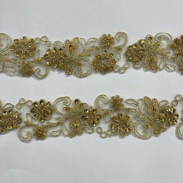 1 Yard Beaded Corded Embroidered Lace Trim 2" Wide 100% Polyester Net Mesh for Bridal & Evening Wear - Metallic Gold is backordered and will ship as soon as it is back in stock.