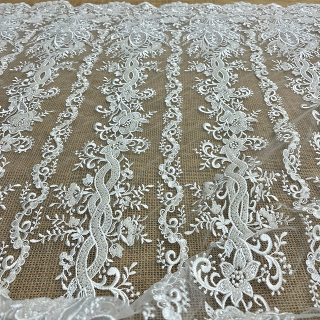 1 Yard Luxury Beaded Lace Fabric with Floral Sequin Embroidery on Polyester Net Mesh Couture Bridal & Evening Wear 51" Wide - Ivory is backordered and will ship as soon as it is back in stock.