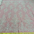 Elevate your special occasion attire with this antique silver beaded lace fabric embroidered on soft polyester net mesh. Featuring intricate bead, pearl, and sequin embellishments, this luxurious lace is perfect for wedding gowns, evening dresses, quinceañera outfits, and dance costumes. Lightweight yet durable, it drapes beautifully for overlays, bodices, sleeves, veils, and decorative accents, providing a refined and couture finish. Sold by the yard in continuous cuts, it ensures seamless versatility for designers and DIY creators seeking high-quality special occasion fabrics.