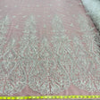 1 Yard Antique Silver Beaded Lace Fabric Embroidered on Polyester Net Mesh Elegant 54 Inch Width