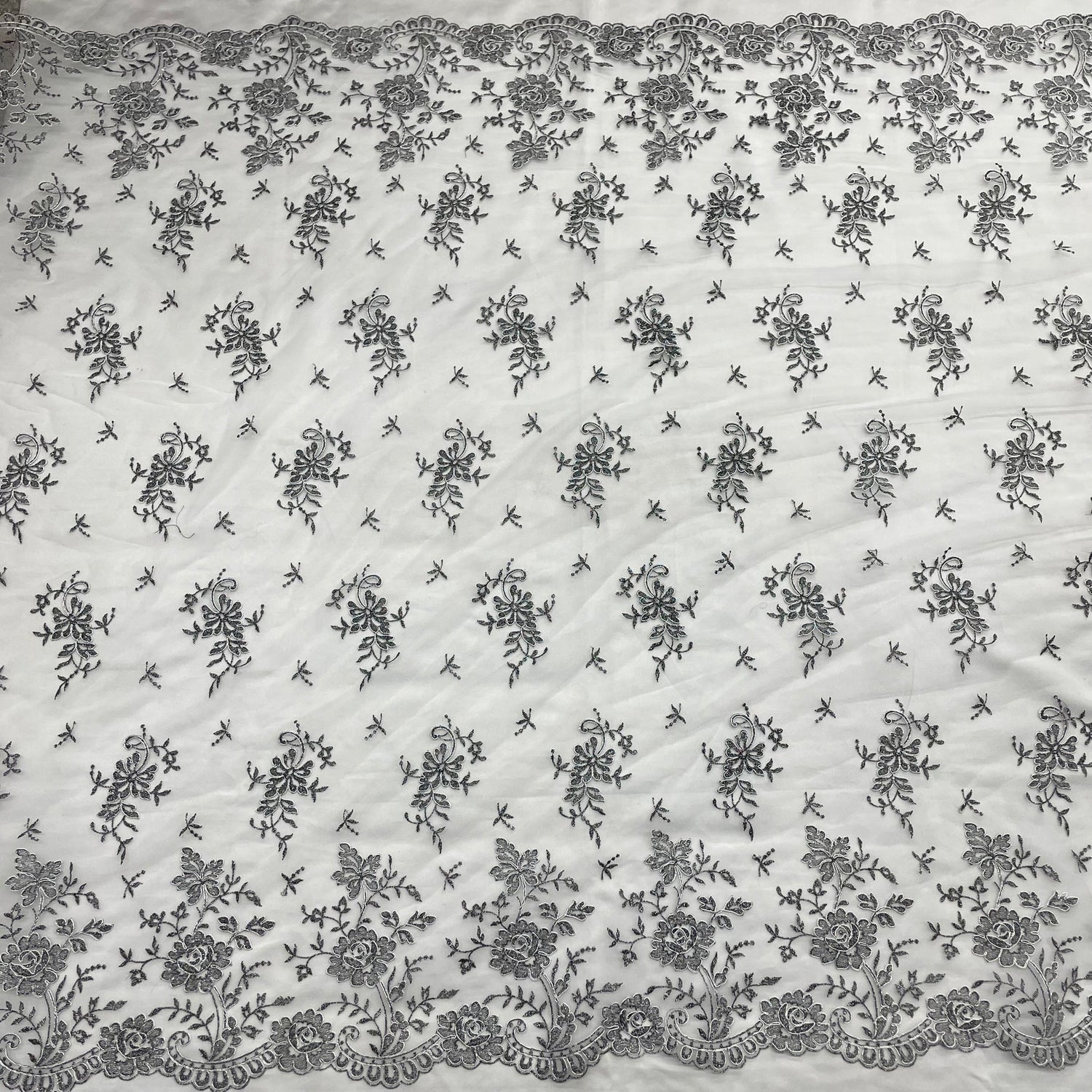 1 Yard Corded Bridal Lace Fabric Embroidered on Polyester Net Mesh for Elegant Wedding and Evening Gowns – 54"